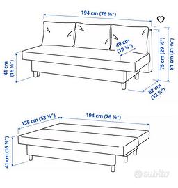 Divano letto 3 posti. Acquistato da ikea pari a nuovo usato 2 volte. Vendesi per mancanza di spazio. Colore beige.