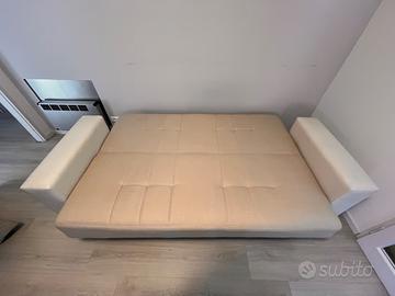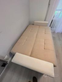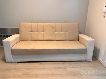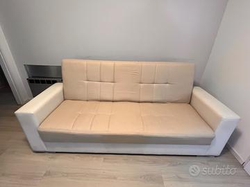 Divano letto 3 posti in ecopelle beige e bianco