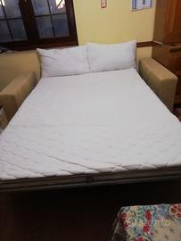 Divano 3 posti, colore beige, che si trasforma in matrimoniale. Nessun difetto! Foderato in dainetto lavabilissimo sfoderabile. in più ha in dotazione il cambio dei cuscinoni in piuma d oca originale come in foto.