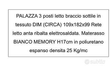 Vendo divano 3 posti letto di Poltrone e Sofà, braccio sottile in tessuto DIM (CIRCA) 109x182x99 Rete letto anta ribalta elettrosaldata. Materasso