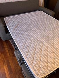 Vendo divano letto matrimoniale con 3 posti a sedere, praticamente nuovo, in perfetto stato, sfoderabile, colore stoffa grigio