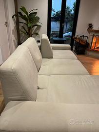 Vendo divano letto 3 posti con penisola come nuovo pochi mesi di vita. Prezzo 2750 vendo perche e troppo grande per il mio living. Schienali mobili (avanti/dietro)