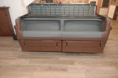 Divano letto in pelle Poltronesofà, 3 posti, colore cognac scuro, misure 102x225 profondità 102, materasso Memory alto 12 misure 140 x 195
