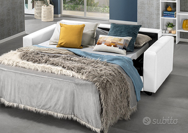 Divano 3 posti -meccanismo a ribalta. Rivestimento eco bianco e tessuto gordon silver.