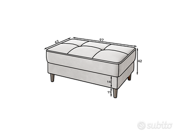 Misure pouf: lunghezza 97 cm – altezza 42 cm – profondità 62 cm