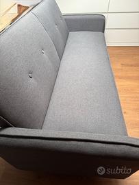 Divano letto 3 posti in tessuto grigio con gambe in legno Mis.190x79 cm - schienale reclinabile