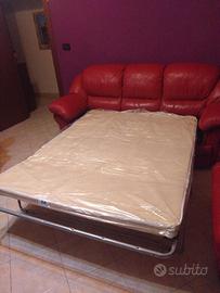 Divano letto 3 posti rosso in vera pelle