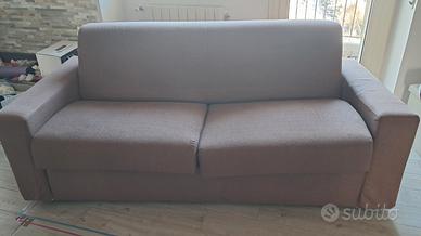 divano 3 posti con letto matrimoniale per due persone. tessuto sfoderabile. largo 198 cm,profondità 94 cm,altezza 84 cm. piccole macchie sul tessuto della seduta,divano integro e funzionale