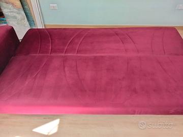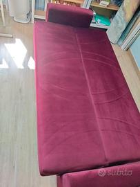 Vendo divano letto 3 posti in tessuto maya burgundy in buone condizioni. Ribaltando la testiera si trasforma in un divano letto, mentre alzando la base si accede al vano contenitore, comodo e spazioso. Misure 225 x 84 x 91. Ritiro e trasporto a carico dell'acquirente. No spedizioni. Prezzo trattabile.