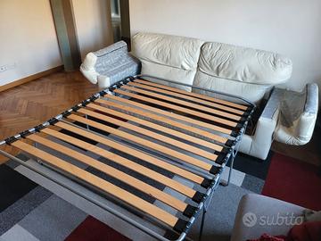 Divano letto in pelle panna 3 posti.modello Giaggiolo Poltrone e Sofà, Design classico molto belo ed estremamente comodo. Pelle in ottime condizioni, sempre usato il copridivano. Misure 220x90cm, larghezza seduta tra i braccioli circa 150cm. Lunghezza aperto circa 230cm. Larghezza rete 160cm.
