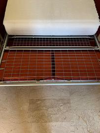 Divano letto in tessuto, 3posti, 1,95x95 cm 2cuscini, completo di rete elettro saldata e materasso ( mai utilizzato ) 1,80x1,40x 10cm Porta cuscini all’interno della struttura