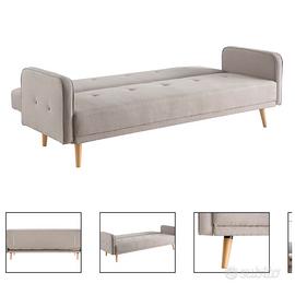 Divano 3 posti dal design moderno e lineare, ideale per dare carattere a qualsiasi ambiente. Rivestito in tessuto color senape, caldo e luminoso, si abbina perfettamente sia a pareti scure che a spazi più neutri. Lo schienale è reclinabile e diventa un letto (v. Seconda foto da esempio) Condizioni perfette - ha circa 1 anno di vita Dimensioni totali : L205 x P82.5 x H80.5 cm Dimensioni posto letto : L189 x P107 cm dimensione schienale : L189 x H43 cm Dimensioni seduta : L189 x P55 x H43 cm Densità seduta e schienale : 50 kg/m3 Altezza piedi : 18 rivestimento : 100% poliestere materia piedi : Frassino
