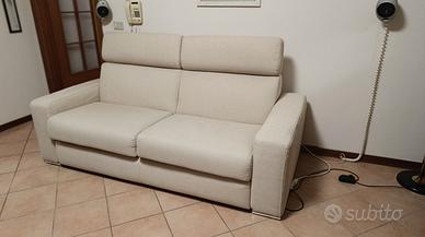 Vendo per mancato utilizzo divano letto 3 posti modello Montecchio di Poltronesofa’, in tessuto sfoderabile e lavabile in lavatrice 30°, colore beige scuro, dimensioni 103x206x100. Rete letto anta-ribalta elettrosaldata con materasso memory in poleuretano espanso dimensioni 140x195 altezza cm 12. Ritiro presso il venditore