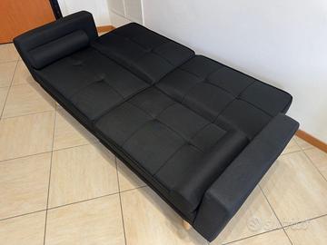 Divano 3 posti nero con schienale reclinabile e si trasforma in letto. Nuovo. Già smontato e facile da trasportare. Ritiro e trasporto a carico dell’acquirente.