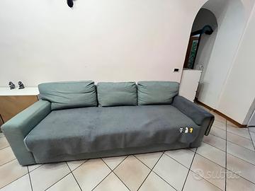 Comodo divano letto apribile in modo semplice e veloce , diventa un buon letto matrimoniale, ha anche un capiente contenitore sotto . Tessuti resistenti e cuscini sfoderabili e pratici da lavare lo rendono durevole nel tempo .