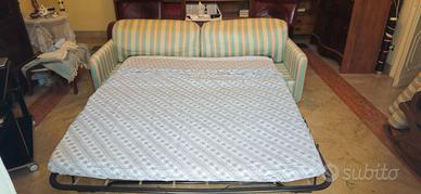 Divano letto 4 posti anni 70 in tessuto. In ottimo stato fatto salvo per la copertura dei due cuscini che risulta macchiata.