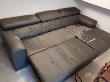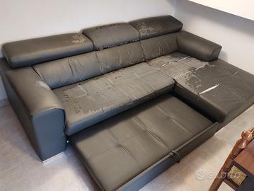 Vendo causa trasloco a casa più piccola, Divano letto 4 posti più chaise long lato sinistro da seduti, il divano, in eco pelle, presenta una quasi totale spellatura che con un copridivano si copre, copri divano delle sue dimensioni incluso nella vendita, la parte meccanica del "letto" perfettamente funzionante e usato massimo 3 volte, non ha nessuna macchia, non ho animali domestici, presente solo una strappo sulla chaise long.