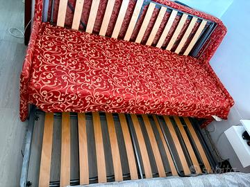 Vendesi pregiata struttura Divano letto a castello con cassetto extra letto. Totale 3 letti singoli. Struttura in alluminio, rifoderato recente con cuscino no ed un materasso nuovo mai usato.