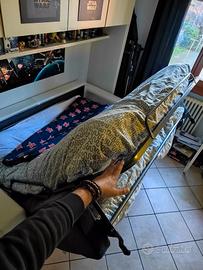 Divano letto 3 posti - meccanismo a ribalta modello ROSY (Mondo Convenienza) 204 x 95 x 90 Rivestimento eco bianco, tessuto gordon grigio scuro