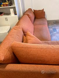 Divano letto matrimoniale ad angolo con penisola. Dimensioni 297x85 seduta 3 posti con rete e 180x95 penisola. Coloro arancione un po’ scolorito da sole e usura.