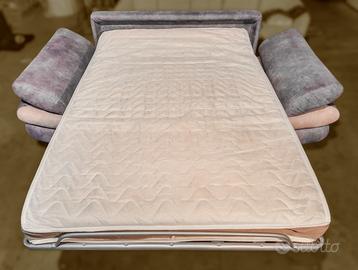 Divano letto con sistema di apertura facilitata: una corda permette di trasformarlo facilmente in letto senza rimuovere i cuscini, che rimangono saldamente attaccati per maggiore comodità.