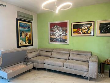Bellissimo divano letto alcantara Poltrone e Sofà Lunghezza 3m x 1 m Pouf 1m x 60 cm Cuscinotti schiena veta piuma Poggia testa reclinabile in piu modi Divano si puó scomporre