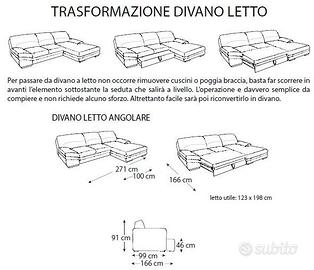 Divano letto angolare 3 posti penisola A SINISTRA tessuto e similpelle