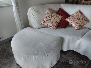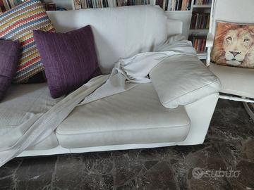 Divano letto angolare di vera pelle, bianco, con copertura bianca su misura fatta dal tappezziere. Letto matrimoniale alla francese Condizioni Perfette Smontabile in più pezzi Misure: 3mt lunghezza 1,1mt profondità seduta+spalliera 2mt lunghezza angolo compreso pouf 70x94 pouf Zona Santa Marinella (RM)