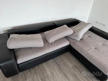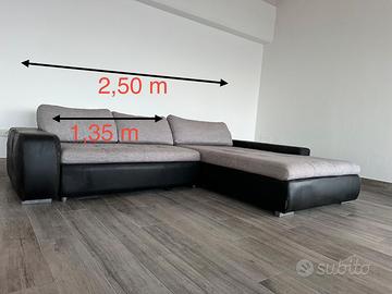 vendo divano con chaise longue Poltrone&Sofa misura circa 2,50 m x 2,00 m (vedi foto) altezza seduta circa 44 cm altezza schienale circa 60 cm molto comodo e spazioso apribile per diventare letto matrimoniale Fodere di tessuto con braccioli in ecopelle Il tessuto è come nuovo senza macchie e senza lesioni, ma la pelle del bracciolo ha lesioni ben visibili (vedi foto). solo ritiro