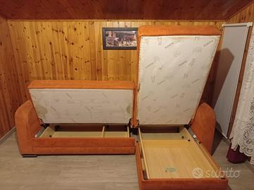 DIVANO LETTO ANGOLARE CON CONENITORE ARANCIONE