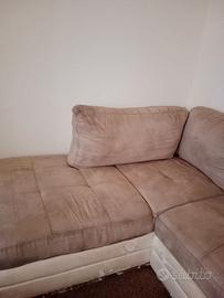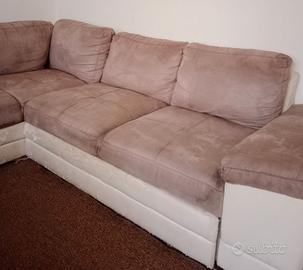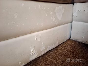 Divano letto angolare con contenitore, penisola a destra struttura in buona condizioni, presenta qualche macchiolina ed ecopelle spellata come in foto.