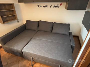 Vendo divano letto angolare con contenitore IKEA FRIHETEN, rivestimento Skiftebo grigio scuro, completo di chaise-longue e funzione letto/doppio letto.