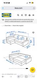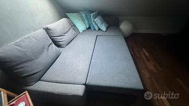 Letto angolare IKEA modello FRIHETEN, colore grigio chiaro; divano estremamente versatile e funzionale, perfetto per soggiorni o stanze degli ospiti. Caratteristiche principali: • 3 in 1: Divano, chaise-longue e letto matrimoniale. • Contenitore integrato: Ampio vano sotto la penisola per riporre cuscini, coperte o biancheria da letto. • Trasformazione rapida: Si trasforma in un comodo letto matrimoniale in pochi secondi semplicemente estraendo la base (come da foto). • Penisola posizionabile: La penisola può essere montata sia a destra che a sinistra a seconda delle esigenze di spazio. Stato del mobile: Il divano è in ottime condizioni generali. Il tessuto è ben tenuto, non presenta macchie evidenti o strappi. Il meccanismo di apertura è fluido e perfettamente funzionante. Dimensioni: • Lunghezza: 230 cm • Profondità: 90 cm / 151 cm (lato penisola) • Altezza: 66 cm Prezzo: € 230 Smontaggio e trasporto a carico dell'acquirente (si smonta facilmente in pochi blocchi).
