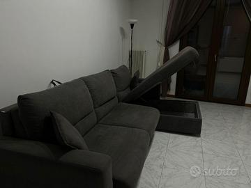 Vendo per trasferimento in altra casa divano letto matrimoniale angolare come in foto. Il divano è in ottime condizioni fatto salvo una parte leggermente scolorita dai raggi solari, di marchio Made in Italy garanzia di qualità. Il divano presenta un letto matrimoniale ribaltabile e, nella parte angolare, un vano contenitore dove poter riporre qualsiasi elemento. Le misure del divano sono le seguenti: 285x170x85cm.