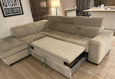 Vendo divano letto angolare con penisola e funzione letto, acquistato 4 anni fa (valore iniziale 1.500€), tenuto con cura e in buone condizioni.