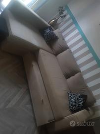 divano letto angolare a penisola ikea cm 235 150 tessuto beige scuro, cassetto estraibile per diventare letto matrimoniale