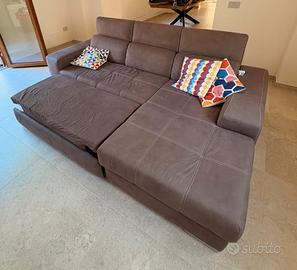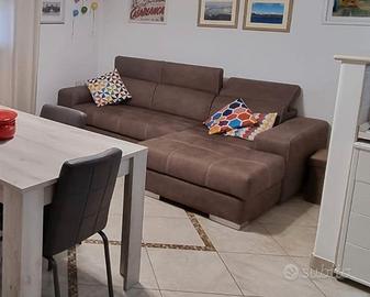 LISA DIVANO LETTO ANGOLARE CON PENISOLA DESTRA L.259 P.171 H.78 - MECCANISMO ESTRAIBILE - RIVESTIMENTO FIBRA ELEPHANT Caratteristiche Vendo splendido divano letto angolare con penisola "Lisa". il divano si presenta in eccellenti condizioni, praticamente pari al nuovo. E' un'ottima scelta per chi cerca comfort e stile. Si trasforma facilmente in un letto estraendo il modulo nascosto sotto la seduta. Dotato di poggiatesta reclinabili, offre un supporto personalizzato per il massimo relax. Si adatta facilmente a qualsiasi arredamento, rendendolo perfetto per ogni ambiente. Semplicissima le gestione: per mantenerlo sempre pulito, basta passare un panno morbido sul rivestimento. Comprato nuovo ad euro 800,00. Misure del prodotto 259 x 171 x 94cm (larghezza, profondità, altezza)