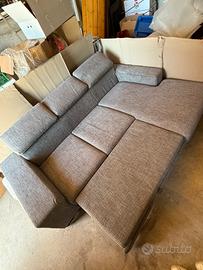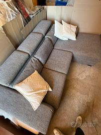 Vendo per inutilizzo divano letto angolare con poggiapiedi estraibile, poggiatesta regolabili, n. 3 cuscini lombari di colore grigio antracite + n.3 cuscini e n. 2 pouf color panna.