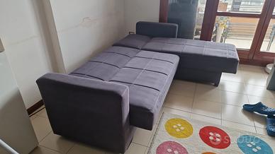 Divano Sani Mondo convenienza. Divano letto angolare con penisola contenitore - meccanismo clic/clac Tessuto lam grey cm. 225 x 150 x 81 Ritiro immediato visto e piaciuto. No perditempo