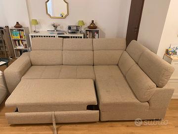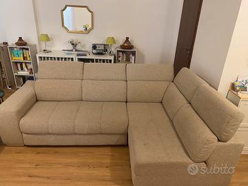 Vendo divano angolare (4-5posti) con chaise longue marca mondo divani del 2022 in garanzia fino al 2032 colore beige.