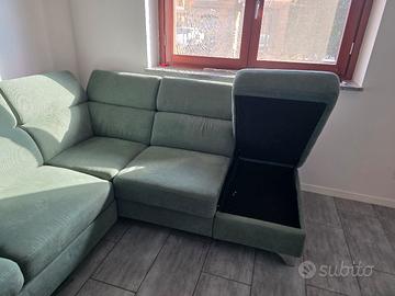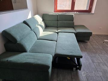 Vendo divano letto angolare colore verde con poggiatesta regolabili e puof contenitore. La parte estraibile che compone il letto è da sistemare in quanto non rimane aggaciata alla struttura. Ritiro a carico dell'acquirente in zono Bereguardo
