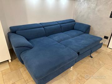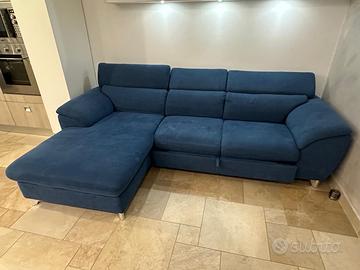 Divano Elettra acquistato da Mondo Convenienza 4 anni fa DIVANO LETTO ANGOLARE CON PENISOLA A SINISTRA- MECCANISMO LETTO ESTRAIBILE - RIVESTIMENTO IN TESSUTO Poggiatesta reclinabili e piedini argento, stile moderno. Si trasforma facilmente in un letto estraendo il modulo posizionato sotto la seduta. Misure del prodotto: 269 x 175 x 94cm (larghezza, profondità, altezza) Nessun difetto importante se non normale usura sulla seduta e un poggiatesta che fa un po’ più resistenza al movimento Facilmente smontabile in 3 parti, penisola/letto/parte centrale Trasporto o spedizione a carico cliente o da valutare il costo in base alla distanza