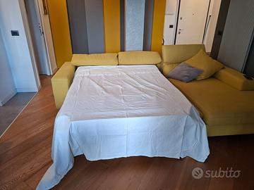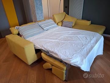 Vendo divano angolare giallo con penisola a sinistra con poggiatesta reclinabili. Nuovo acquisto del 2016 di Poltronesofà. Dimensioni chiuso: 300x200, dimensioni rete e materasso 140x190. Disponibile da fine aprile, smontaggio e ritiro a carico dell'acquirente.