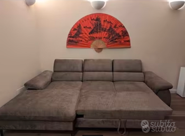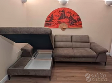 Divano letto acquistato a marzo 2025 da Garnero Arredamenti, pari al nuovo, 288x182 con box contenitore e poggia testa regolabili tessuto vellutato verde oliva molto elegante.