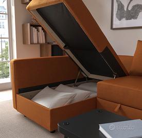 Vendo divano letto angolare IKEA modello FRIHETEN, (prezzo attuale 649€) colore beige, ideale per soggiorni o camere degli ospiti. Il divano è molto versatile e si trasforma in un letto matrimoniale in pochi istanti. Regalo due fodere originali del copri divano Punti di forza: • Contenitore integrato: Ampio vano sotto la penisola, perfetto per riporre cuscini e coperte. • Penisola Reversibile: Puoi montare la chaise longue a destra o a sinistra in base alla tua stanza. • Facilità d'uso: Meccanismo per estrazione letto fluido e perfettamente funzionante. Condizioni dell'oggetto: Il divano è in buone condizioni generali e la struttura è solidissima. Nota estetica: Segnalo per correttezza la presenza di un piccolo forellino sulla seduta della chaise longue (come visibile nelle foto di dettaglio). Il difetto è puramente estetico e non ne pregiudica l'utilizzo; è facilmente copribile con un plaid o un copridivano. Aumenta visibilità