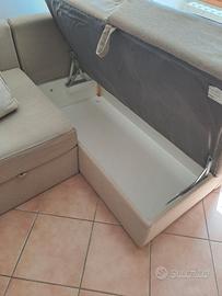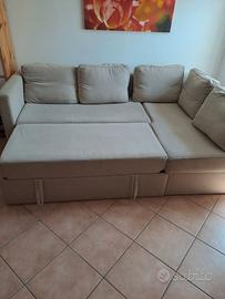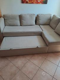 Divano Letto angolare Ikea con contenitore porta oggetti. Colore beige. Misure 220 cm lato lungo e 160 cm lato corto. Ritiro sul posto.