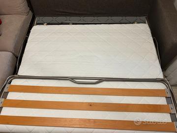 * Funzionalità: Si trasforma facilmente in un letto. La struttura interna ha una solida rete a doghe in legno e un materasso alto 5 cm, con una dimensione di 160 x 190 cm.