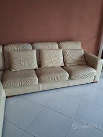 divano letto matrimoniale a penisola, mt 2.90 per 2.10, 2 pezzi separabili, in vera pelle. usurato ma non danneggiato. smontaggio e trasporto a vostra cura (appartamento al 5 piano)
