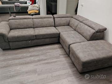 Vendo divano letto angolare, modello Raffaello di mondo convenienza, con poggiatesta regolabile. Il divano è in buono stato ma presenta delle macchie. Il pouf finale si può staccare.