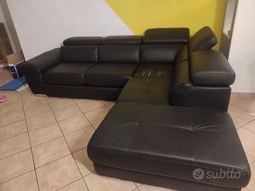 Divano angolare in similpelle nero. Struttura solida e molto comodo. Presenta segni di usura sulla seduta della penisola (vedi foto). Ideale per taverna, casa vacanze o seconda casa. Prezzo trattabile.